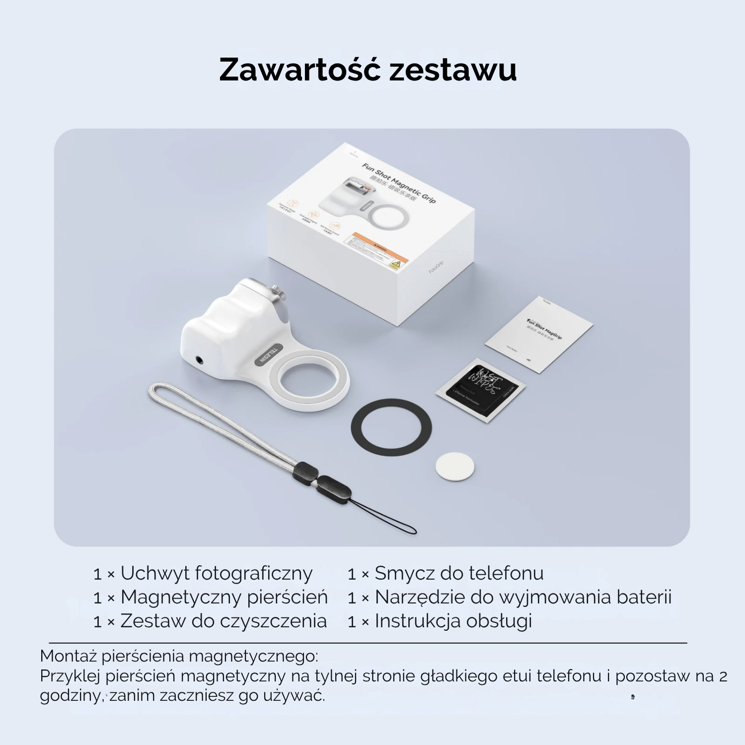 Przymocuj magnetyczny pierścień do etui, przyłóż telefon do uchwytu i voilà — gotowe!