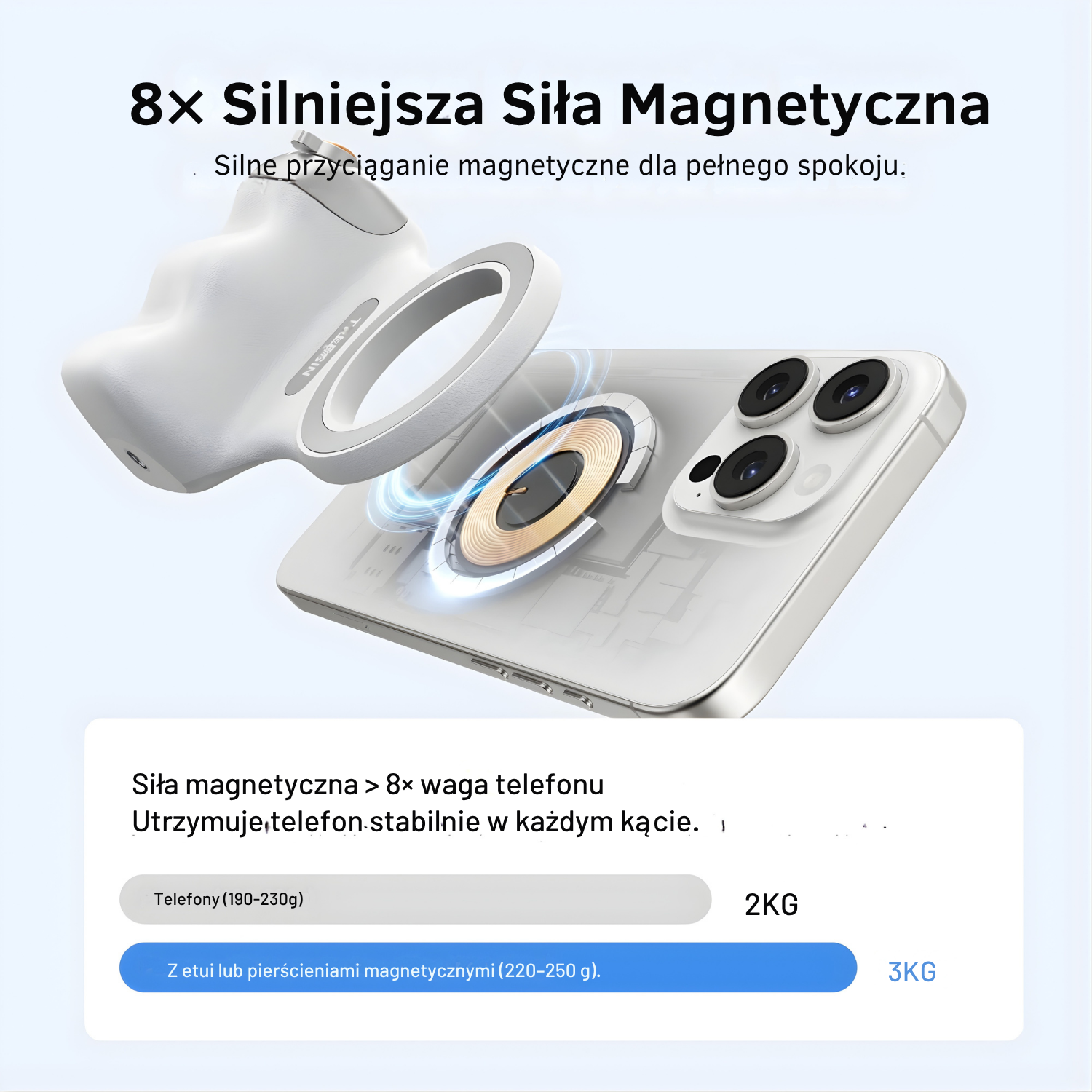 - 🧲 Silny magnes zapewnia pełne bezpieczeństwo telefonu